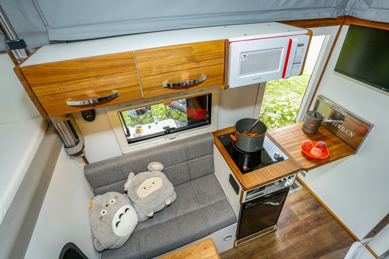 首先在吃饭问题上,对于旅美速腾越野房车车主而言,不必为吃饭的事情烦恼,因为不论走在哪里,只要在冰箱里备好各种食材,在通过便利的厨房操作台、户外猛火炉灶等工具,就能烹调出符合自己口味需求的饭菜。像福特F150LTD自由者越野房车上,就有双冰箱双厨房,使用起来特别方便。