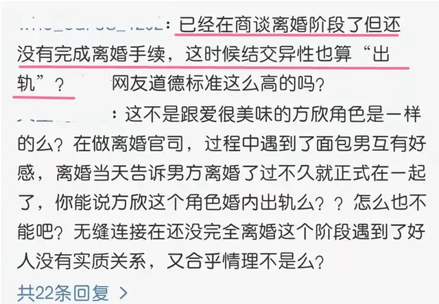 还有网友拿出电视剧中的桥段说,在做离婚官司期间,女方遇到了互有好感的人,离婚当天告诉了男方,离婚后就与那个互有好感的人正式在一起了,这能说明女方是婚内出轨吗?