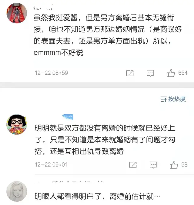 有人说,夫妻二人是双双出轨,至于是因为在办离婚期间出轨的,还是因为出轨决定离婚,就不得而知了。