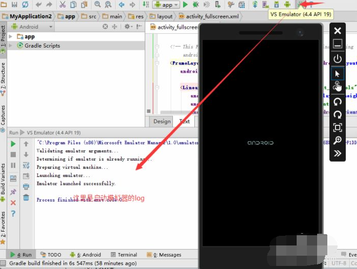 8、然后点击刚刚新添加的按钮了,就可以启动Android模拟器了。