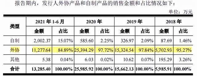 从产品研发到和客户签订订单的整个流程来看,北方长龙主要参与研发和销售环节,而生产主要依赖于外协,从销售数据上看,2018-2020年度,北方长龙外协产品销售额占比均在95%以上。
