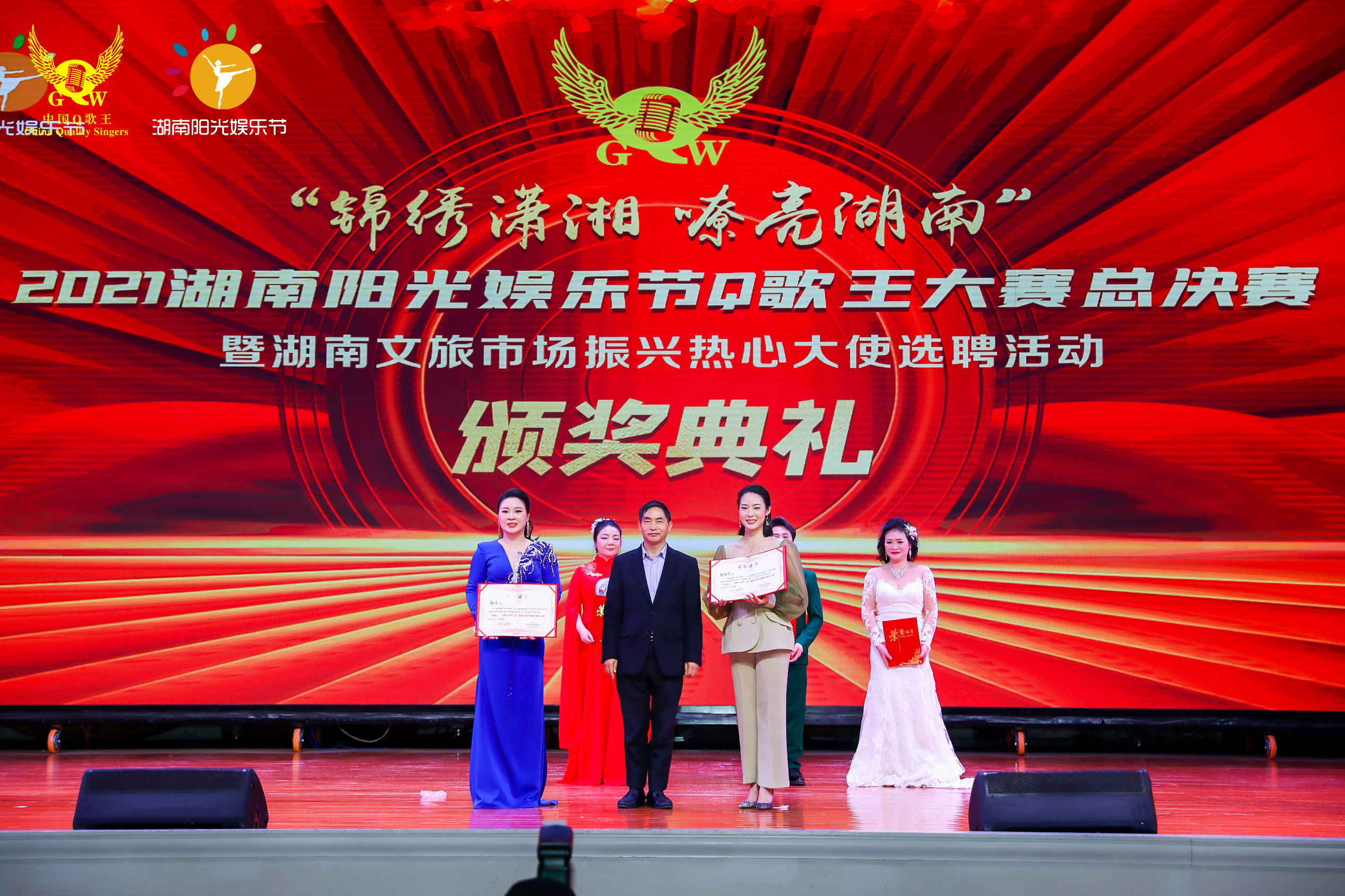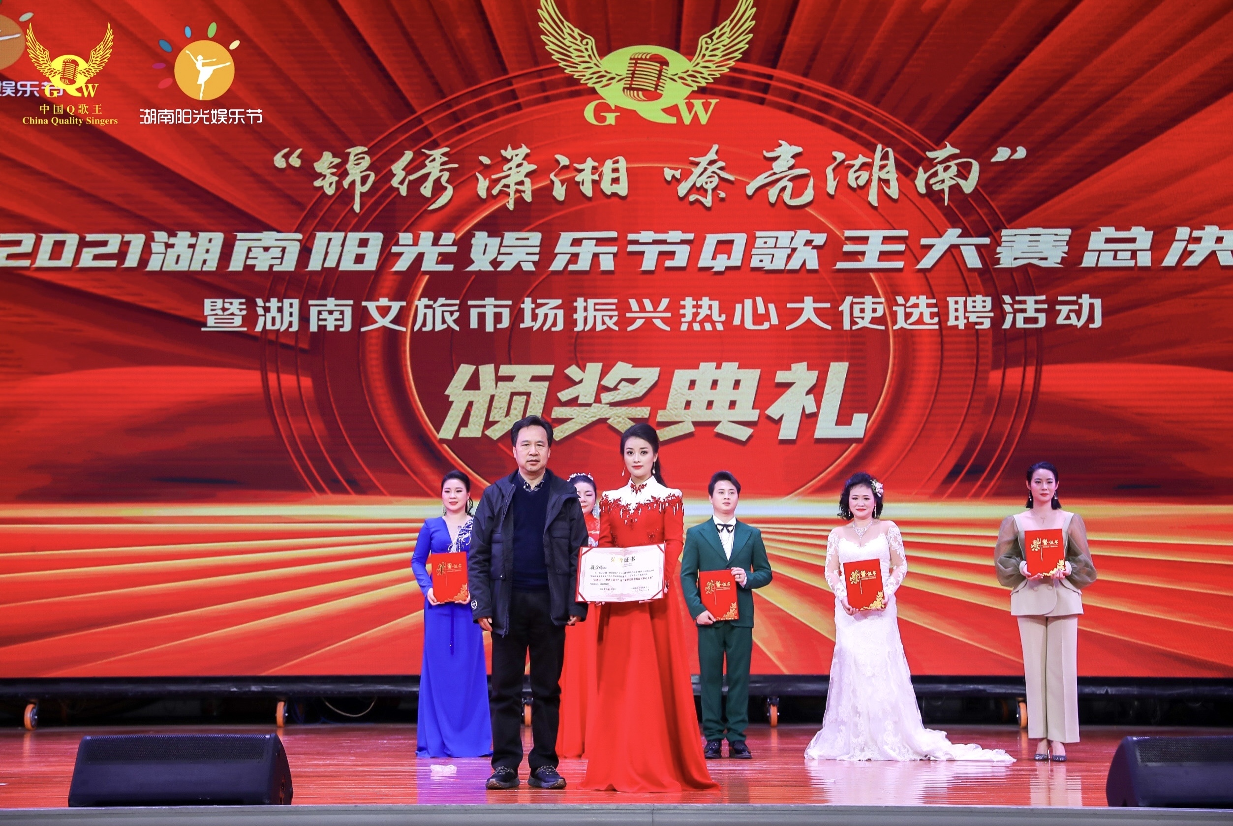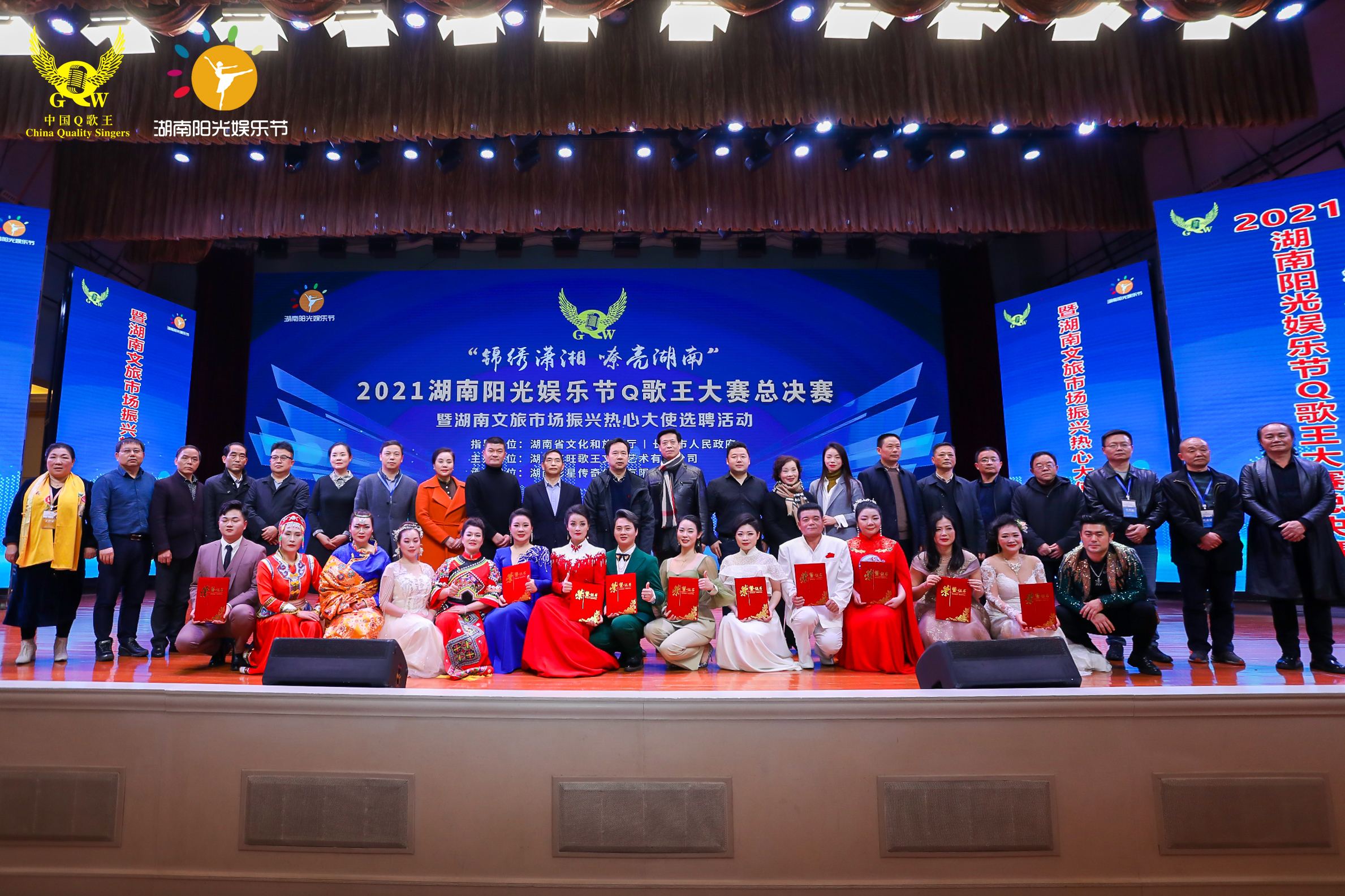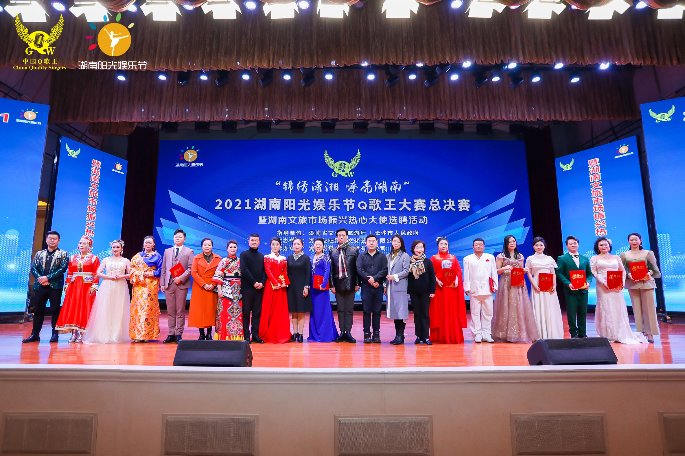 12月20日晚,由湖南省文化和旅游厅、长沙市人民政府为指导单位,湖南亿旺歌王文化艺术有限公司主办、湖南影星传奇传媒有限公司承办的“锦绣潇湘 嘹亮湖南”2021湖南阳光娱乐节Q歌王大赛总决赛暨湖南文旅市场振兴热心大使选聘活动在长沙明城国际大酒店凯旋宫圆满举行。