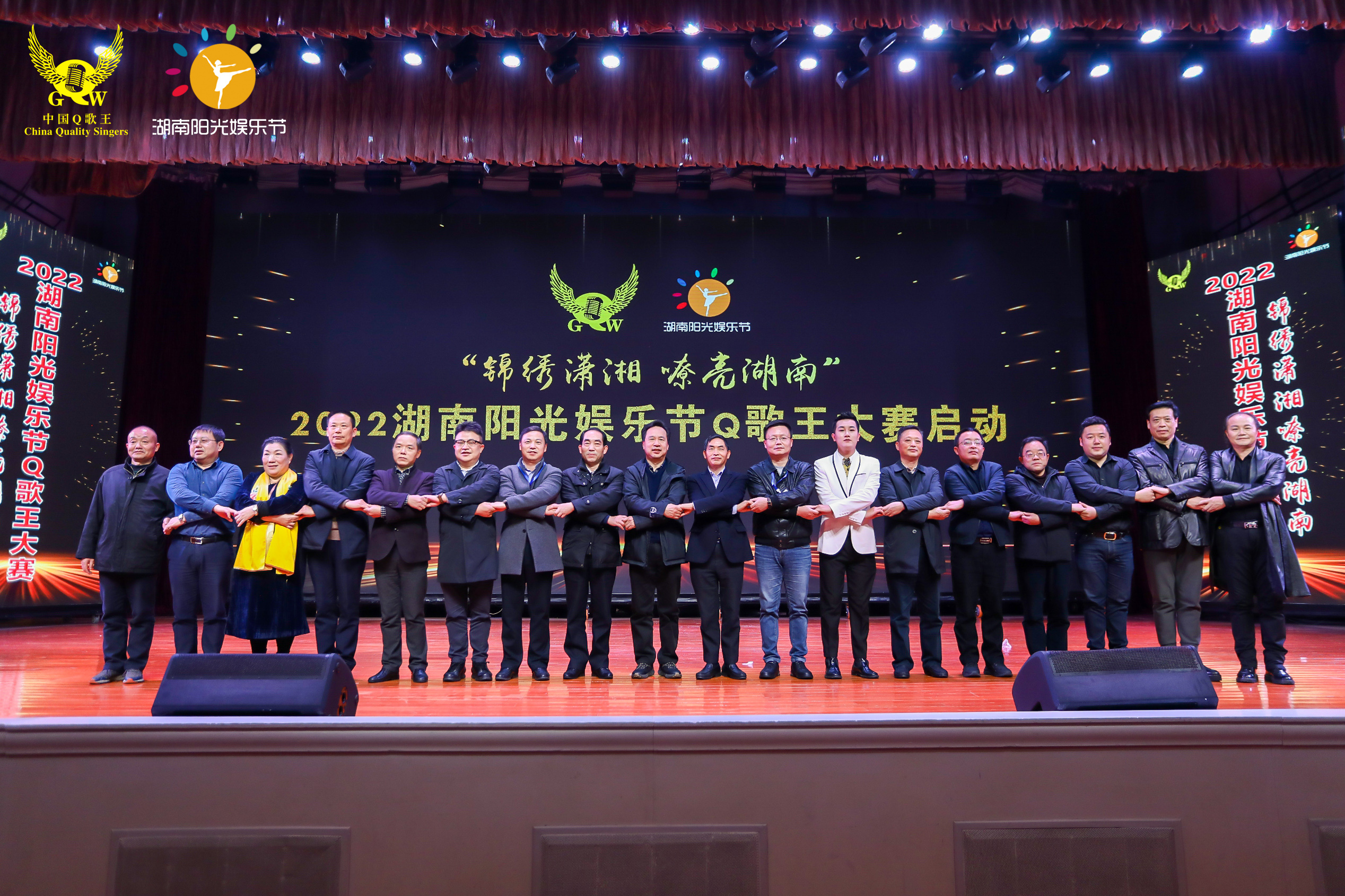 活动中由湖南省文化和旅游厅及十四个地州市文旅部门负责人共同启动“锦绣潇湘 嘹亮湖南”2022湖南阳光娱乐节Q歌王大赛。