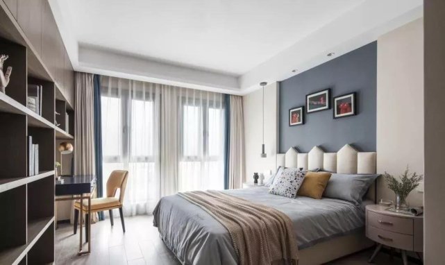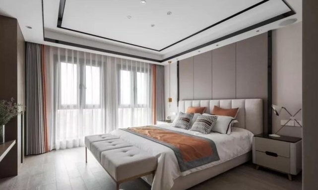 主卧选择木地板更贴合温馨舒适地追求体验,软硬装则选择整体现代风格。
