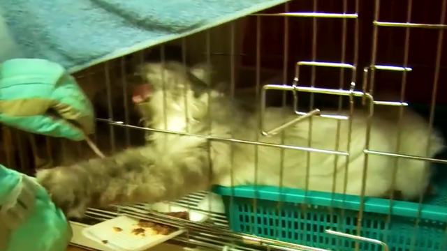 主人解释道,小灰以前不是这样的,之前是非常乖的。紧接着主人看小灰安静了下来,就壮着胆子上前撸小灰。但是主人还是有点心有余悸,小灰就跑进了笼子里,前段时间小灰刚生产了几只小奶猫。经过专家分析小灰最近的攻击行为都是产后抑郁症引起的,或多或少是带了点母老虎的基因,