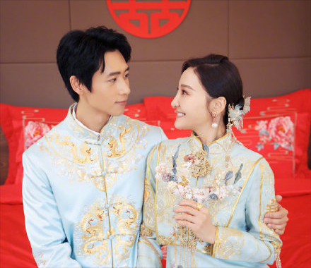 今天,两人在三亚补办了婚礼,身着中式礼服,又狠狠地撒了一把狗粮。