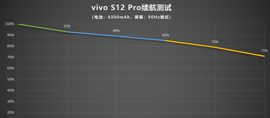 续航方面,屏幕亮度为50%,开启90Hz高刷模式。具体测试项目和结果如上图,经过3个小时续航测试,剩余电量还有71%。在大电池和90Hz屏幕的配合下,续航表现还不错。