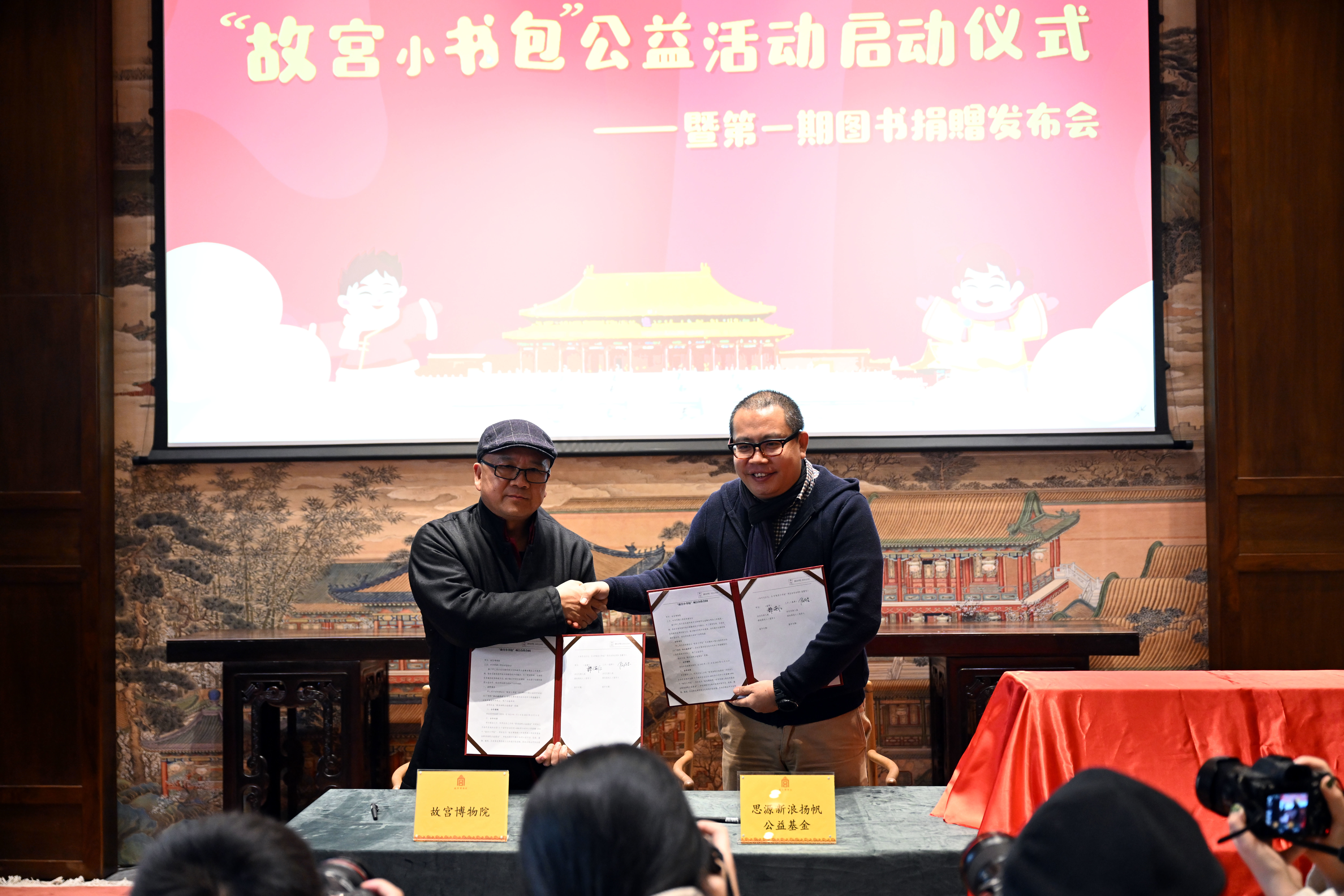 12月22日,“故宫小书包”公益活动启动仪式暨第一期图书捐赠发布会在北京故宫博物院举行。“故宫小书包”公益活动计划向全国6000所学校各捐赠一个价值4000元的“故宫小书包”,内含故宫出版的集中体现中国书法、绘画、器物、建筑、历史等中华优秀传统文化的通识性图书。