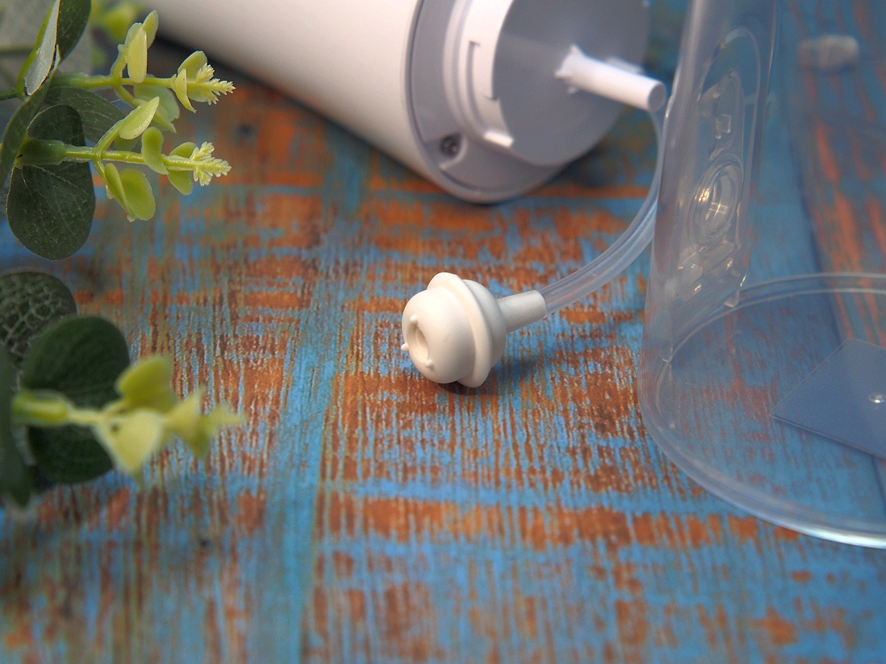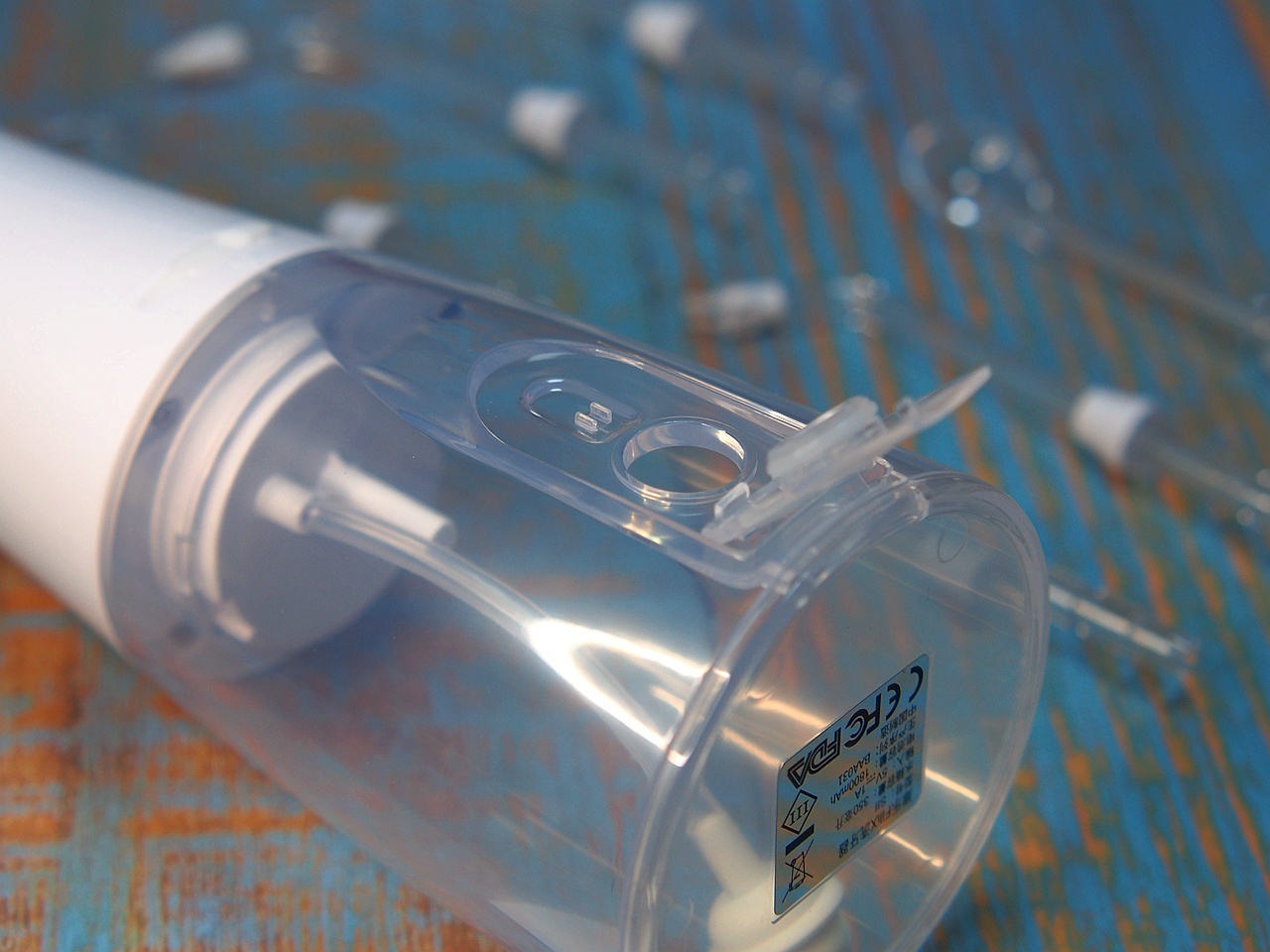 采用了350ml超大水箱容量,可以一次冲洗过瘾。卡口密封设计,无需担心漏水问题。水箱内吸管最低端设计了重力球,在使用中多角度都可以抽吸到水。保证冲牙过程中,水流源源不断地输出。
