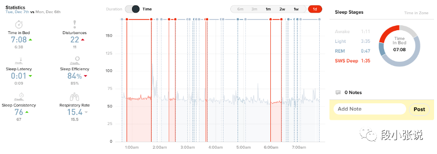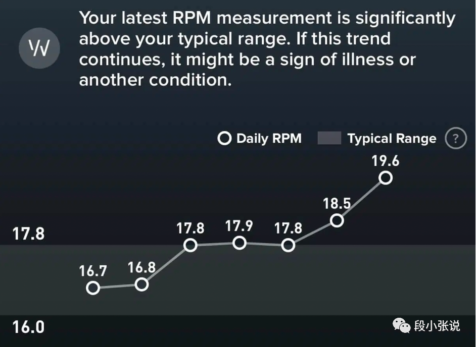 5) 加速度计和陀螺仪:除了常见的运动检测(自动开始记录),Whoop同时采用加速度计辅助检测心率,以及睡眠期的呼吸频率(Respiration Per Minute)。睡眠状态下呼吸频率的上升通常意味着身体处于亚健康/疾病状态。