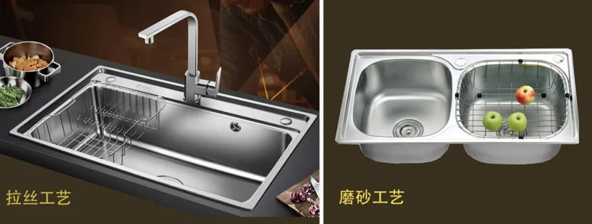 采用一种拉丝的设备在水槽的表面反复拉制,可以从水槽表面看到明显横纹。这种工艺是原色表面,金属质感强、健康耐用且容易清洗,通常采用韧性高,耐腐蚀的304抗菌不锈钢。