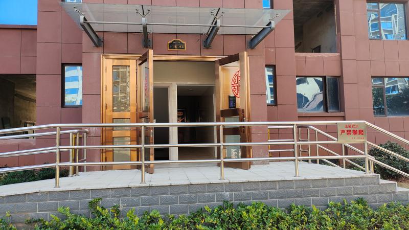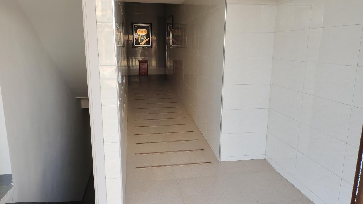 多个楼栋单元门确实不大,进门后见一通道,业主回家须从通道穿行而过,但宽度确实狭窄,两人并行需侧身。通过卷尺现场测量发现,宽度仅1.1米。