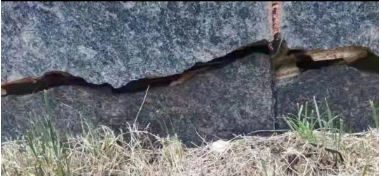 业主们提供的多张照片和视频显示,起初到小区探访时,楼顶有明显的裂缝和渗水现象,外墙靠近地面处有大面积裂缝,墙体存在明显的鼓包等。