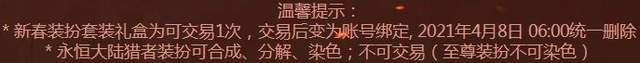 宠物装备自选礼盒和宠物附魔宝珠于2021年均变更为限制1次交易道具,限时至礼包下架。