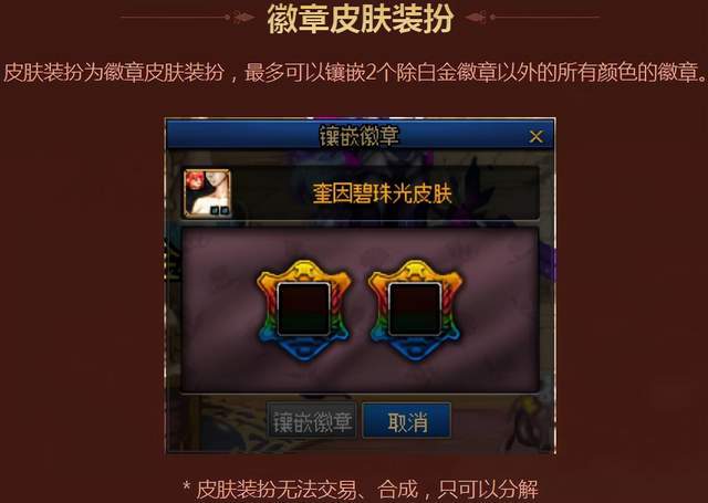 角色亦可选择其他礼包内有彩色徽章镶嵌栏的皮肤替代。