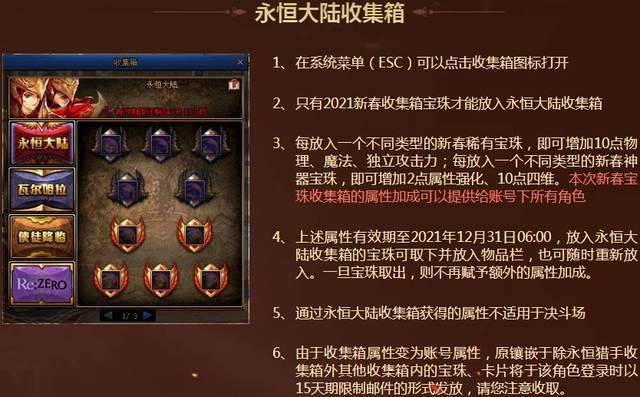 注:宝珠可交易不限次。收集箱属性仅对角色生效,属性有效期到同年12月31日。