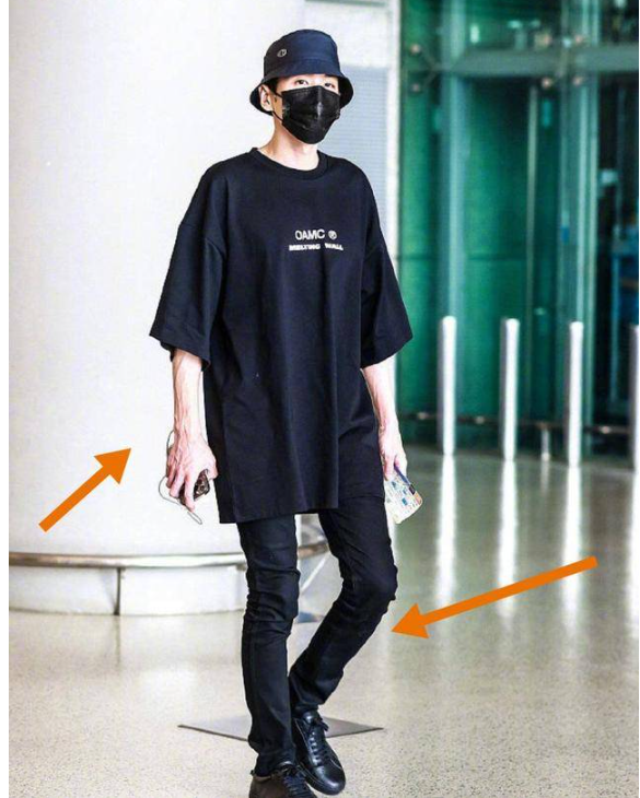 当然,瘦成这样同样也显得像个“大头娃娃”,在路人的视角下,头身比看着很奇怪,一双腿瘦得跟竹竿一样。