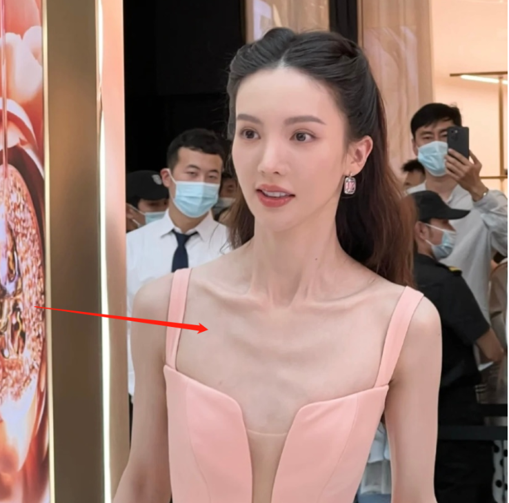吴谨言的脖子细长,但骨架瘦小,加上还有明显的斜方肌,遮住肩膀和胸前的时候还好,一旦露出肩颈部,视觉上那叫一个违和。