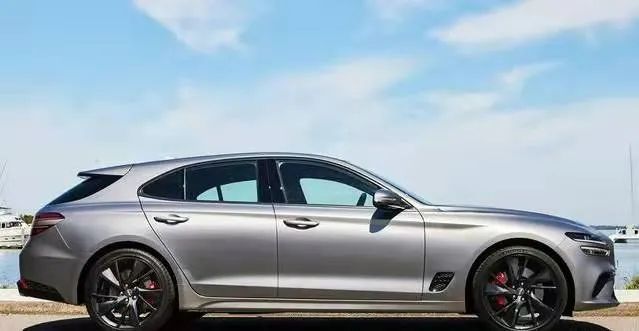 作为一款猎装车,车侧才是最佳的观赏角度,从图中可以看到,捷尼赛思G70 Shooting Brake车型拥有一条平滑的腰线,自前翼子板一直贯穿到了车尾,这就使得这款车看起来十分修长,再结合后扰流板以及小幅度的溜背造型,视觉效果兼顾优雅与运动气质。