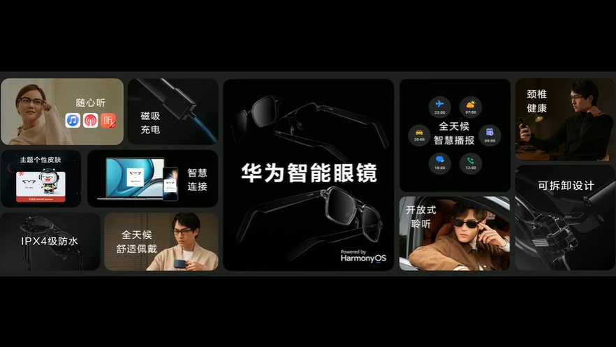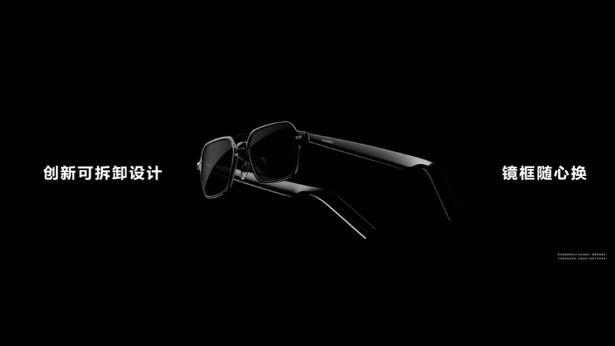一同发布的华为智能眼镜采用了创新可拆卸设计,可以随心更换镜框,采用纤薄弧形镜腿、轻盈尼龙材质、超弹柔软铰链以及镜腿加长铰链,佩戴会更为舒适。