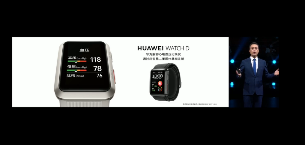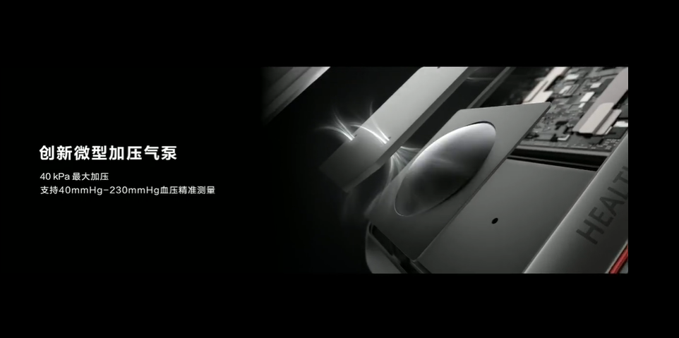 全新的HUAWEI WATCH D定位是专业健康手表系列,专注于提供全方位健康检测以及医疗级健康服务,是业界首款融合式连续血压测量手表,通过了药监督局二类医疗器械注册,采用创新微型加压气泵,40kPa最大加压,支持40mmHg-230mmHg血压精准测量。