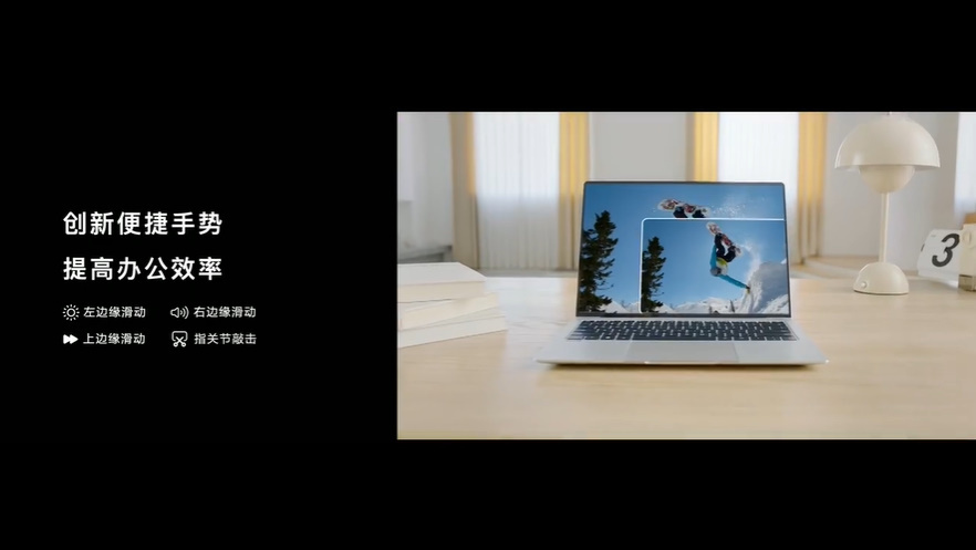 而且华为将压力触控板设计引入到华为MateBook X Pro 2022款上 ,赋予了6种创新手势,可实现触控板手势调节画面亮度、视频进度、音量等,并且支持指关节操控截屏、录屏等功能。