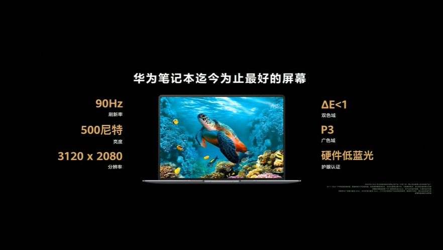 而且华为MateBook X Pro配备了华为笔记本迄今为止最好的屏幕,3120*2080分辨率,500尼特,90Hz高刷新,P3广色域,而且双色域的△E<1,首次采用3D Lut专业校色方案,而且是全球首款获得德国莱茵TÜV专业级双色域色准认证的笔记本。