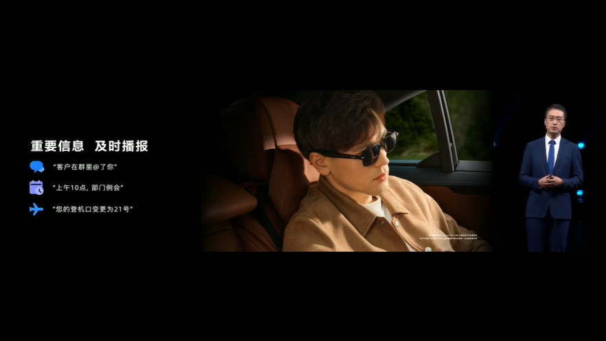 而且一些重要的信息,华为智能眼镜可直接通过语音的方式进行提醒,比如客户在群里@了你、部门例会的日程提醒、登机口变更等。另外可通过触控的方式进行操控眼镜,比如音乐播放与暂停、电话接听与挂断等。