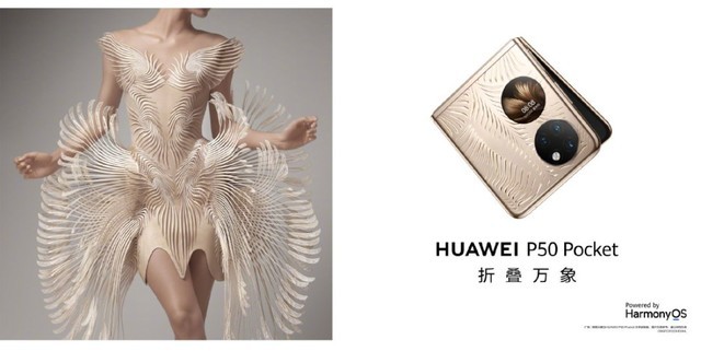 HUAWEI P50 Pocket将是这场发布会的主角,官方已放出了多张海报,展现了该款新机的背面外观,手机后盖为纯白色和金色,有着立体菱形花纹,保证美观的同时易于握持,预计采用玻璃材质,有着类似于时尚手袋外观以及质感。