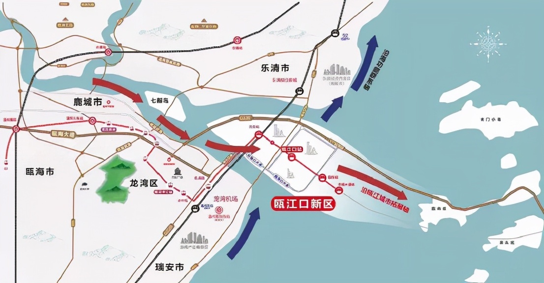 为了更好地推进产业发展,瓯江口板块的交通设施起到了重要支撑的作用。纵观地理位置,位于“两轴”交汇处的瓯江口新区,将成为核心城区、龙湾、乐清、瑞安几个城区的交汇点,是未来大都市区的交通大动脉,也有助于形成“拥江滨海”空间格局。