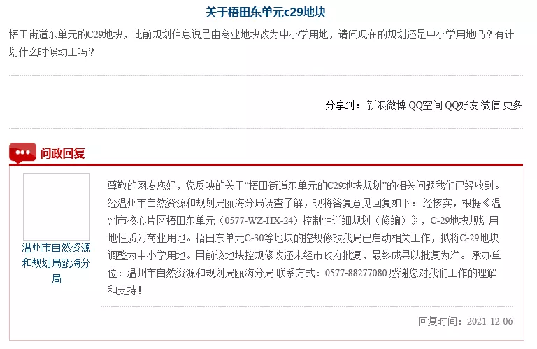 为切实了解梧田东单元未来具体改造规划,有市民在温州问政平台留言询问: