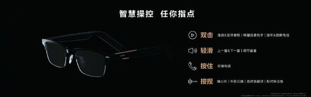 交互方面,支持张开镜腿自动发现附近手机/平板/PC等蓝牙设备自动配对,支持超级终端音频流转、镜腿带有电容触摸按键进行手势控制等。