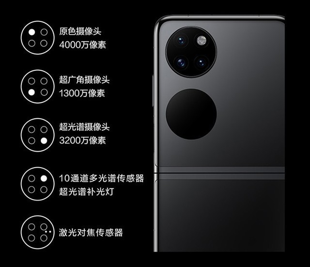 华为P50 Pocket折叠屏手机采用了上下折叠设计,延续了P50系列的万象双环设计。拥有6.9英寸柔性屏、21:9的屏幕比例、2790x1188分辨率、120Hz刷新率。新机重量为190g,厚度为7.2mm,宽度为75.5mm。