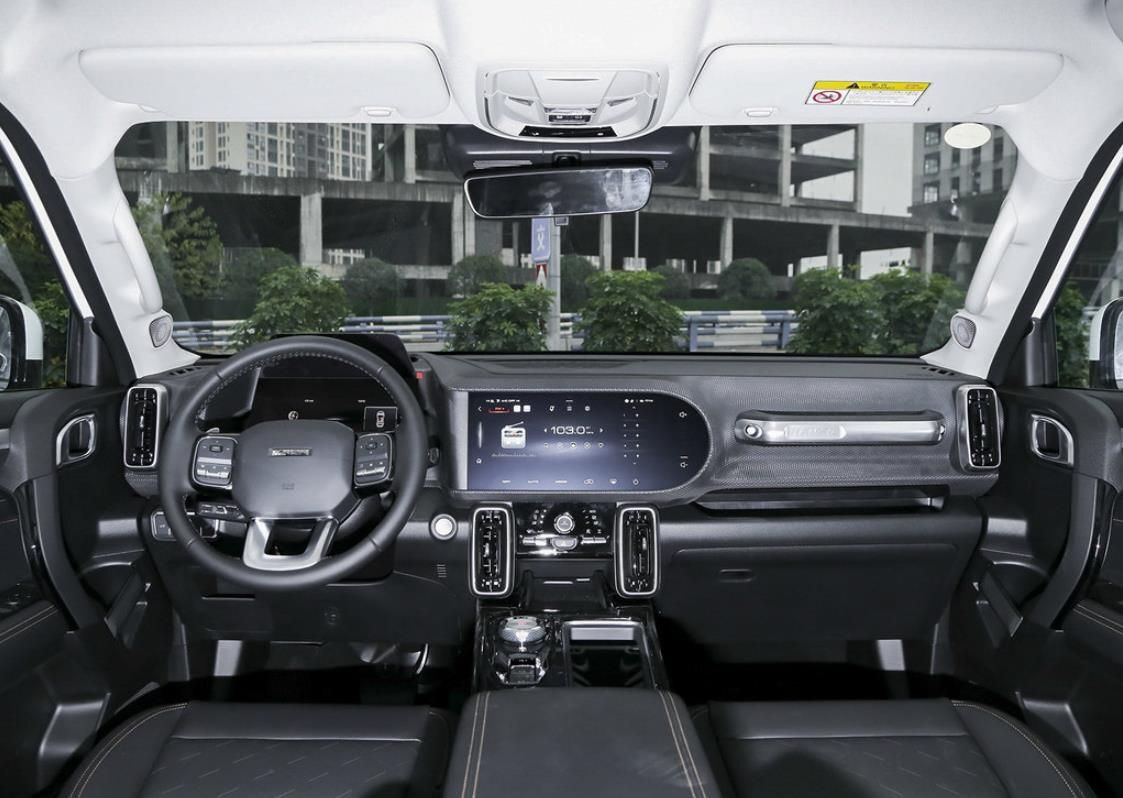 内饰方面,没有做过多改变,将原汁原味的国内设计统统搬到了海外展台上。简单干净的中控台上4个长条状的“回”字形出风口,硬朗个性;配备10.25英寸的全液晶仪表盘和12.3英寸的中控屏,彰显中国科技实力,中控屏内配备了越野显示组件,可以对气压、海拔以及坡度等相关数据进行检测;粗壮的方向盘握感十足,不光适合中国人,同样适合外国人;多功能按键也设计得更大更清晰,方便用户在颠簸或较为复杂的路况下还能清晰准确地操作,提升安全性。哈弗DARGO通过双闪按键上方的旋钮选择驾驶模式,沙地模式和雨雪模式给车子应对极端天气提供了脱困能力。