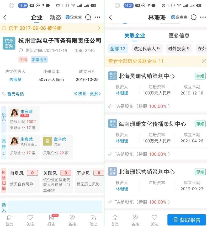雪梨、林珊珊均为杭州宸帆电子商务有限责任公司就有1000名员工面临失业,坊间流传,薇娅是被雪梨举报的,果然同行是冤家,是同行更懂其中的门道,因为都是一对个人独资公司引发的,工商备案信息网上都可以查的到。