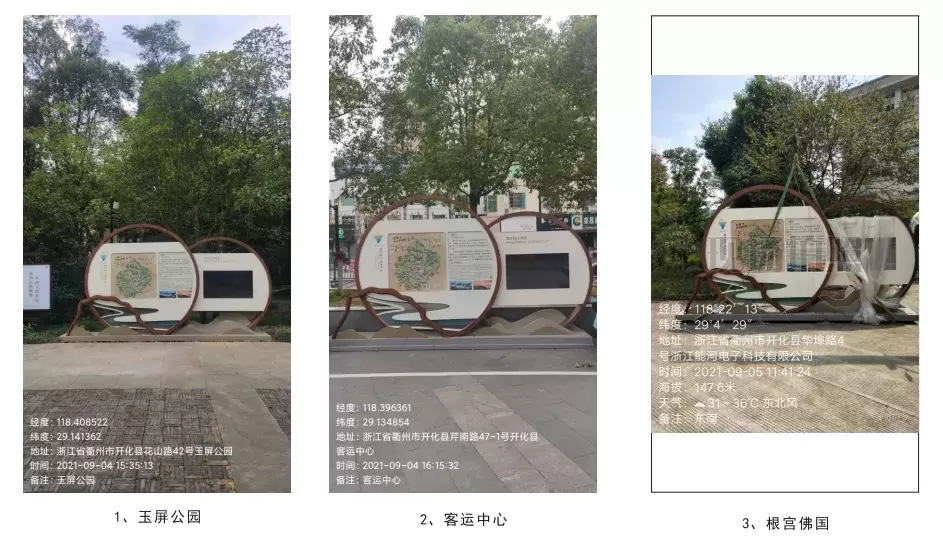 此外,在公交车候车亭和公共自行车橱窗内布置安装了10块景区城全景图,使游客能在搭乘公共交通自行游览时有选择、有方向、有目的。