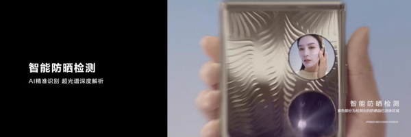 华为镜子依托于华为专业的影像系统、AR增强现实技术以及AI算法技术,再结合医学级的数据分析,为用户提供了便捷的皮肤检测体验。其中,防晒检测会通过超光谱成像系统,AI精准识别,以及超光谱深度分析,实现实时防晒检测。防晒智能提醒还可以根据天气变化等情景给到用户具体的防晒建议;而在晚上,还能检测是否卸妆干净; AI测肤可通过手机后置高清摄像头扫描人脸,利用AI算法等生成多维度肤质分析的详细报告,并与腾讯医典等第三方机构合作,根据检测结果为用户提供专业的护理建议,从而帮助女性用户进行更好地皮肤管理。