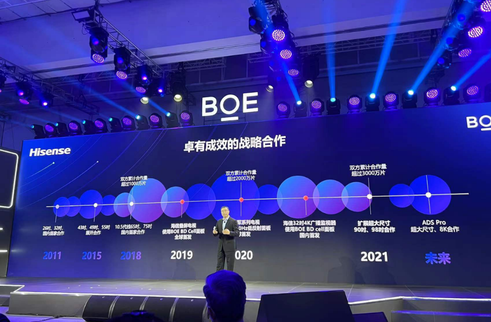 在发布会上,BOE整机合作伙伴海信品牌的于芝涛于总发表了热情洋溢的演讲,盛赞了和BOE多年的合作供应。创维王志国等众多企业大佬也纷纷发来视频贺电,BOE的朋友圈正在一步步扩大,BOE的产品也被广泛的应用。AOC、创维、海信、联想、OPPO、vivo、小米都有非常多的产品应用BOE的产品和技术解决方案。据可靠消息,BOE对苹果手机面板供应也会在明年激增。这些都彰显着行业和消费对于BOE产品的高度认可,也代表中国显示力量在全球市场持续获得认可,竞争力不断走强。