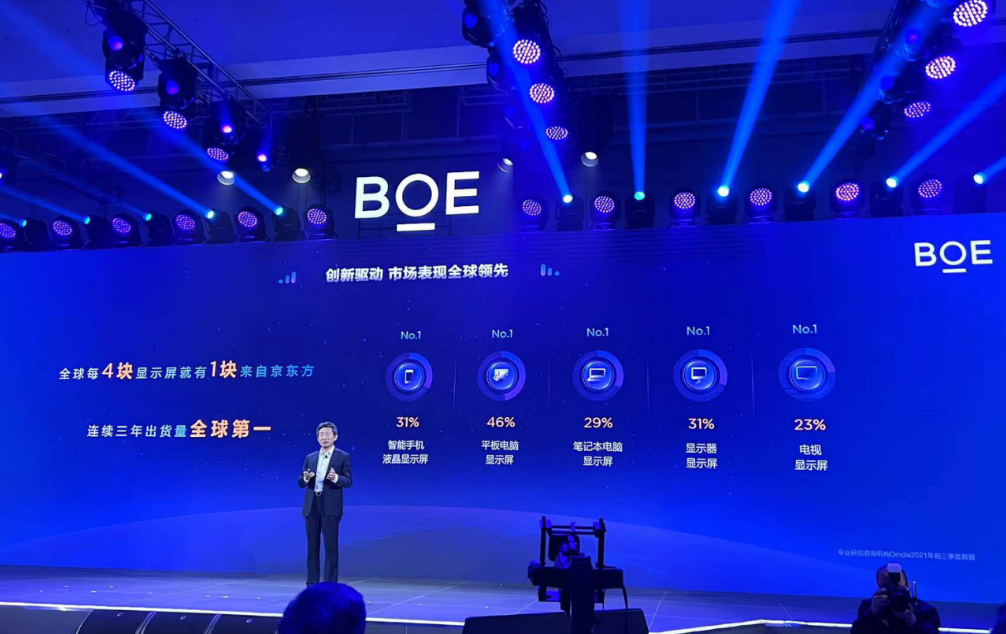 第一,据Omida公布的数据显示,2020年,中国LCD产能在全球的占比已经突破50%。而在2023年时,这一数字更是有望增长至60%。其中,京东方的表现最为优异,在手机液晶显示屏、显示器显示屏、电视显示屏等五大领域,均在全球取得了市占比第一的成绩。京东方自主研发的柔性屏、OLED屏、LCD等屏幕产品都有着非常高的自研技术实力。