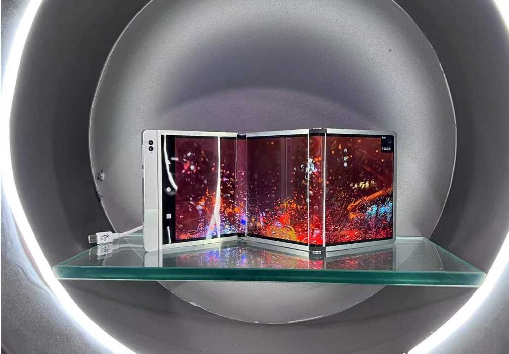 f-OLED无疑是基于OLED技术的,前面的f寓意是flexible和future。OLED柔性显示技术,不仅拥有自发光、高对比度等与液晶截然不同的优势之外,老马也更为推崇其灵动和千变万化的形态,这也是供应的未来显示技术之一。在现场,BOE自主研发的三折OLED整机终端,无疑是一个焦点,吸引了最多的镜头。他的出现让手机可以不止“一折”。另外一个曲面贴合技术的滑卷产品,能支持R4.5动态滑卷次数超过20万次,更是把屏幕从“折叠到滑动”的畅想往前推动了一大步。