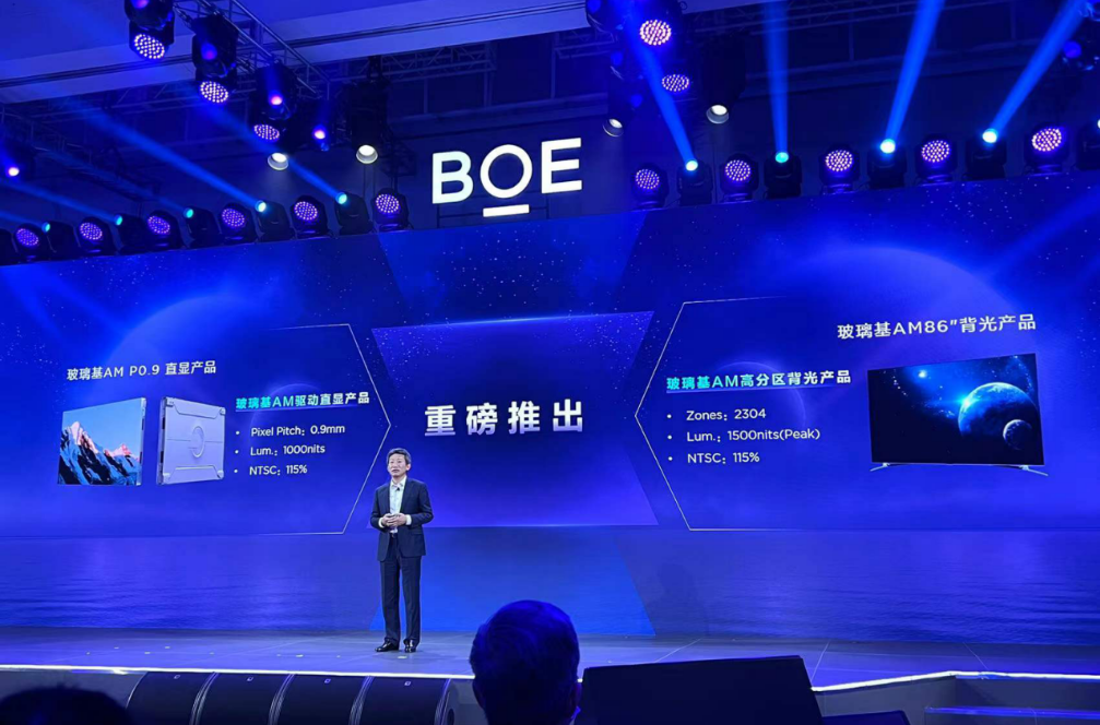 可以说,COG+AM驱动本来就是MLED产业最先进的工艺方向。其中本次展示的玻璃基86英寸Mini LED面板,之前已经被创维Q72用于产品化。另外一款玻璃基AM P0.9 Mini LED直显产品,则是BOE彰显自己技术实力的标杆。