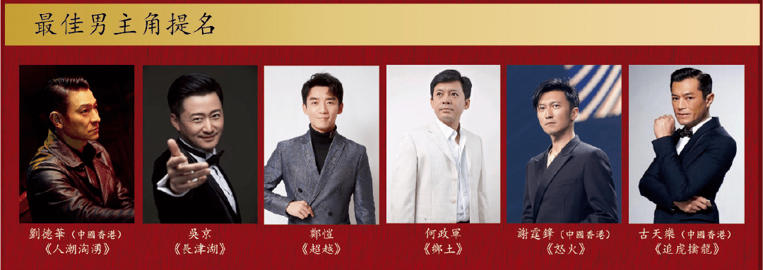 而刘德华、谢霆锋、吴京和古天乐等男星获得最佳男主角提名