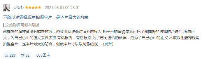 甚至在豆瓣里,有网友也发出同样的感慨「谢霆锋的演技离满分越来越近,烧菜没耽误他对演戏的投入。」