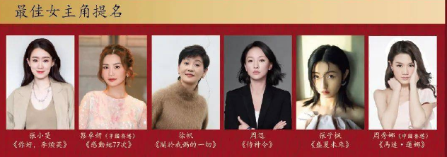 张小斐、张子枫、周迅、蔡卓妍和徐帆等女星获得最佳女主角提名。