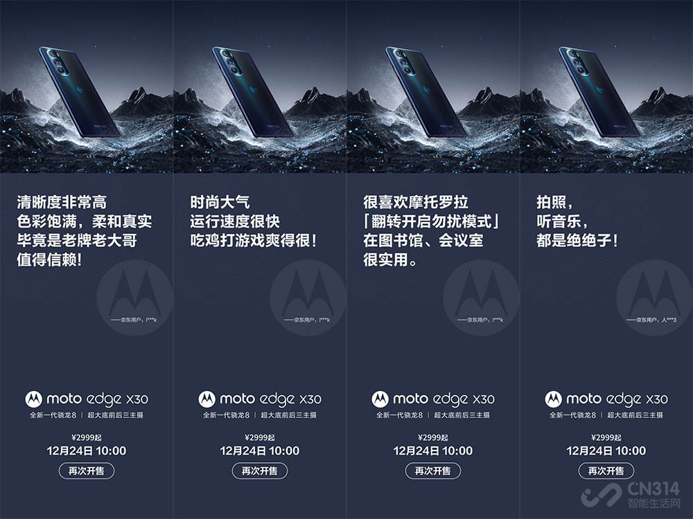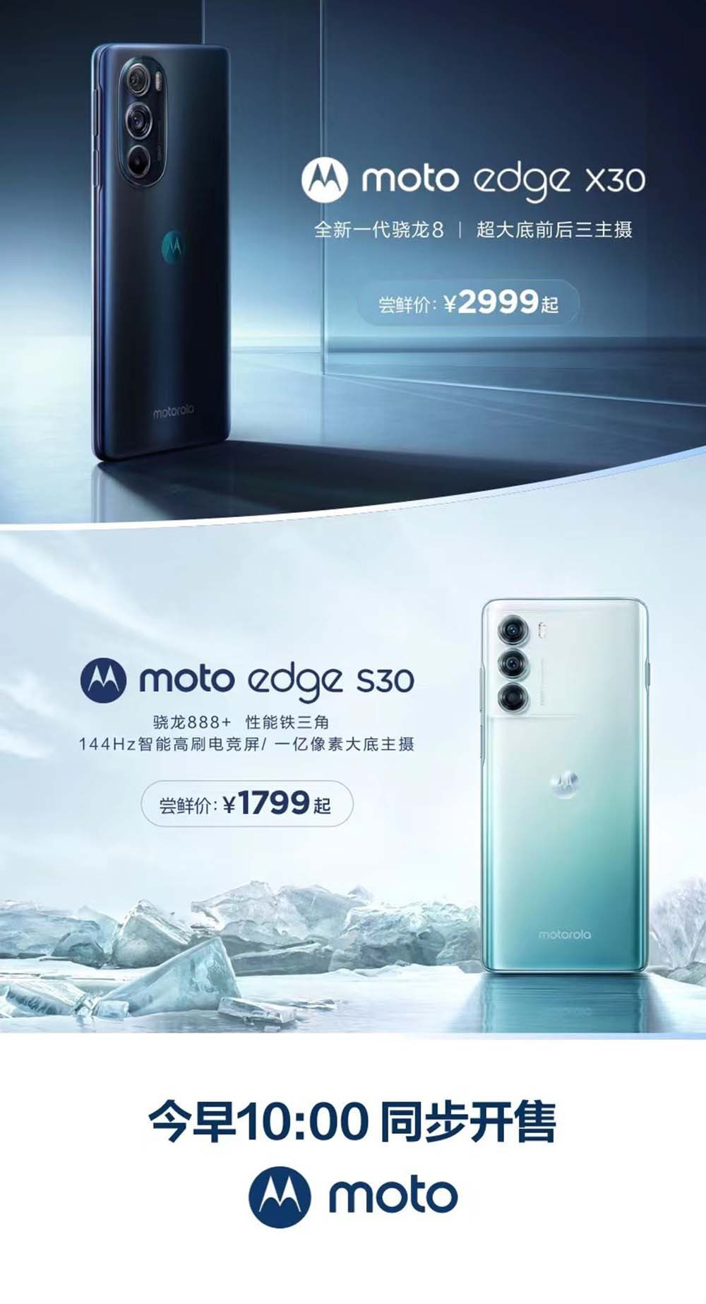 时间来到了12月末,越来越多的手机厂商发布、官宣了新机,但是始终没有撼动moto两款旗舰的“真香”地位。12月24日10:00首发骁龙 8 Gen 1的moto edge X30和搭载骁龙888+的moto edge S30再次开售,这已经是这两款旗舰新机多次现货开售。