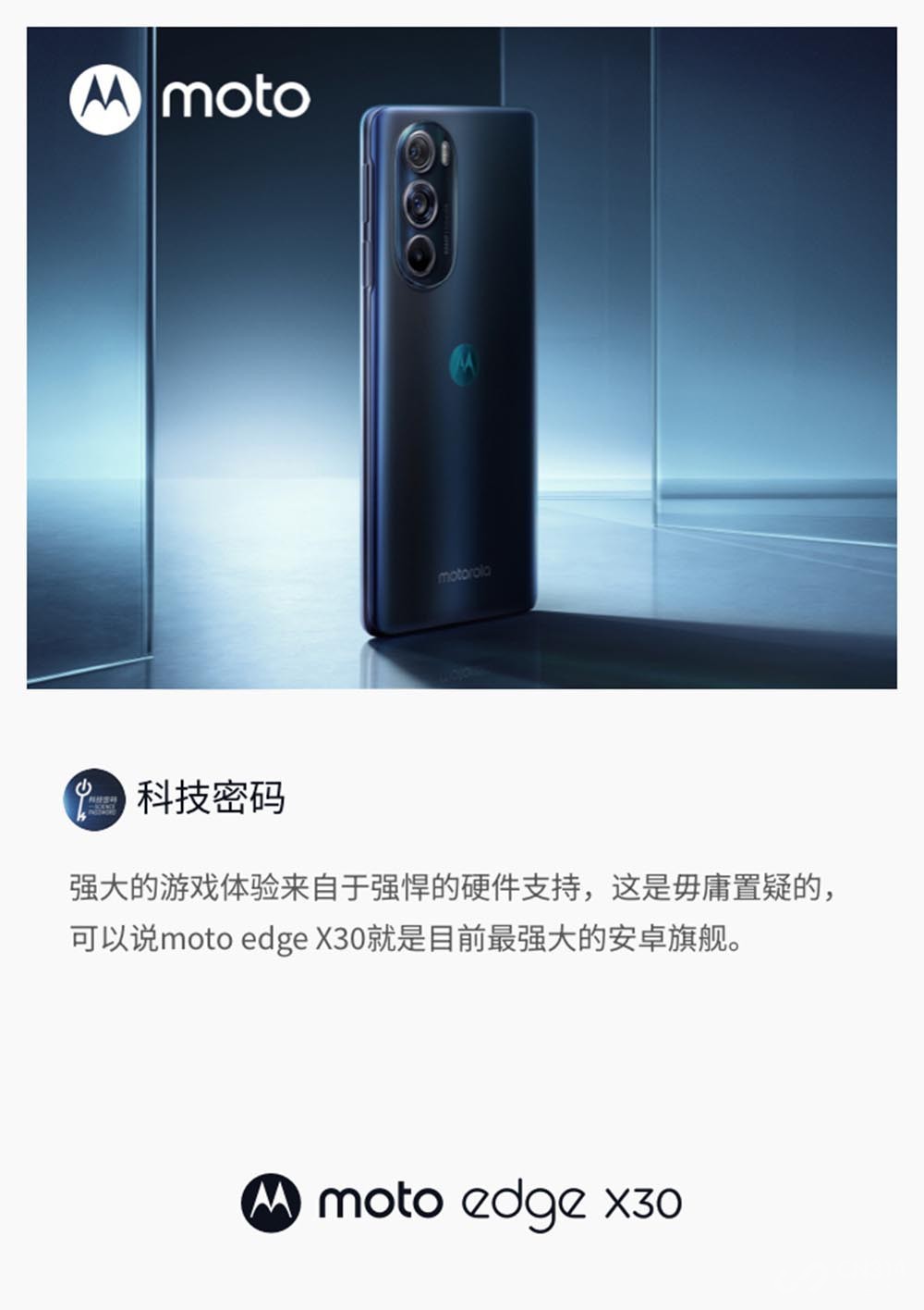 moto edge S30在同价位没有敌手,而另外一款旗舰moto edge X30在同价位也堪称无敌的存在。moto edge X30搭载骁龙8 Gen 1+Turbo LPDDR5+Turbo UFS 3.1性能“三件套”,安兔兔跑分直接破百万,是当下的性能王者;内置5000mAh大电池,即便重度使用也能轻松用一天,68W快充13分钟充电50%,而且能同时给笔记本电脑、游戏机、平板电脑充电。