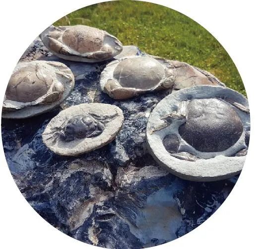 曼兰波是一位化石爱好者,他经常漫步于海边,寻找“石头盲盒”;挑中一块石头后,曼兰波便将它仔细地打磨、凿开,一块螃蟹化石就露出了真面目。螃蟹在细腻的浅海泥巴里丧生,随着潮起潮落,周围的泥巴越来越厚,最后包住螃蟹,形成结核化石。