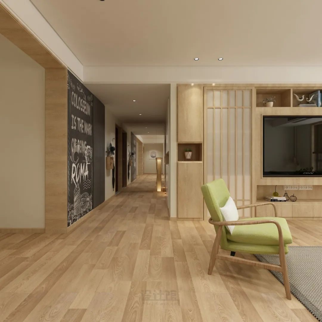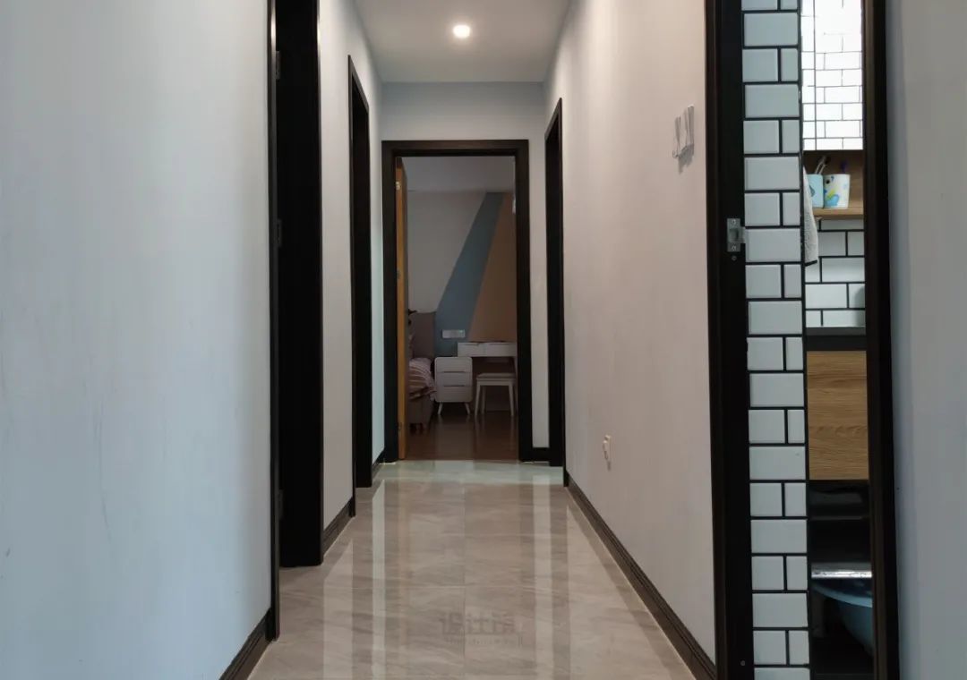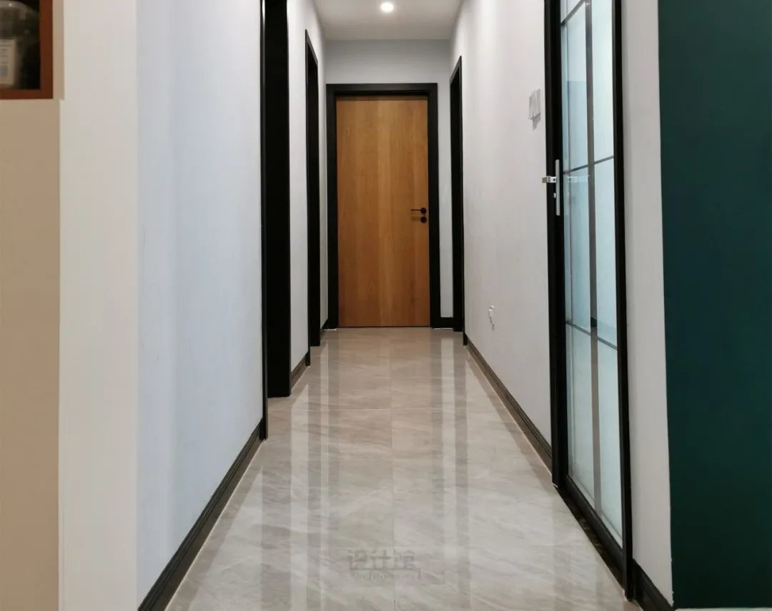 走廊里的房门,一般是装在靠卧室的一侧,也就说门洞下方的地面也是属于走廊区域的,这个位置的地面千万不要把卧室的木地板铺出来,否则在走廊里可以看到地砖与木地板两种材质,会很别扭的!