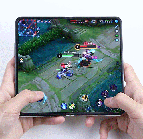 话不多说,直接进入测试环节,先打开OPPO Find N来一局《王者荣耀》。可以看到游戏画面占满了整个屏幕,印入眼帘的大屏观感更容易将玩家带入游戏氛围,视野也更加开阔。手感上恰到好处的尺寸也不会造成太大的握持压力,游戏手感也很舒适。
