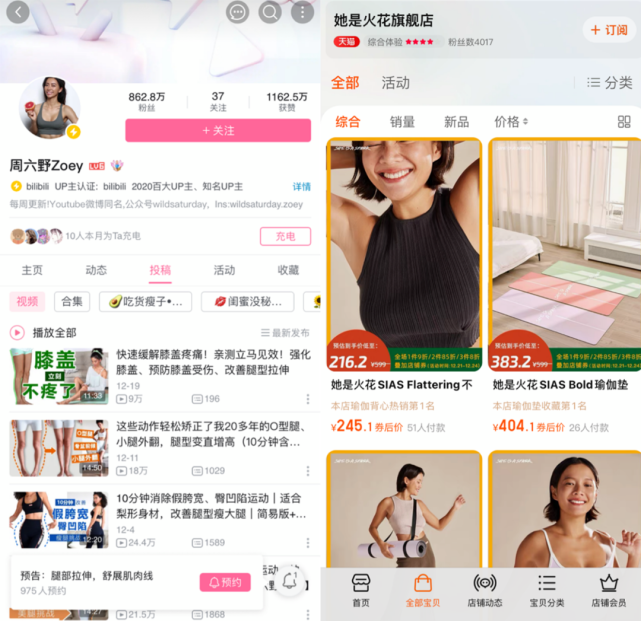 2017年,周六野的私教课程就开始在微信、淘宝渠道上架,定价360元的28天私教课销售额超过百万,如今这档课程已经下架。最近,周六野也与内外推出联名内衣,并和希思黎等大牌进行合作推广。